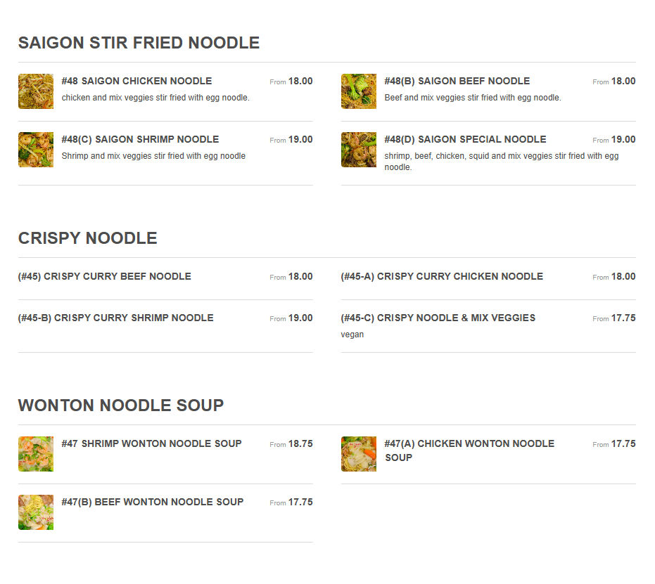 Miss Saigon Takeout & Delivery Restaurant Menu